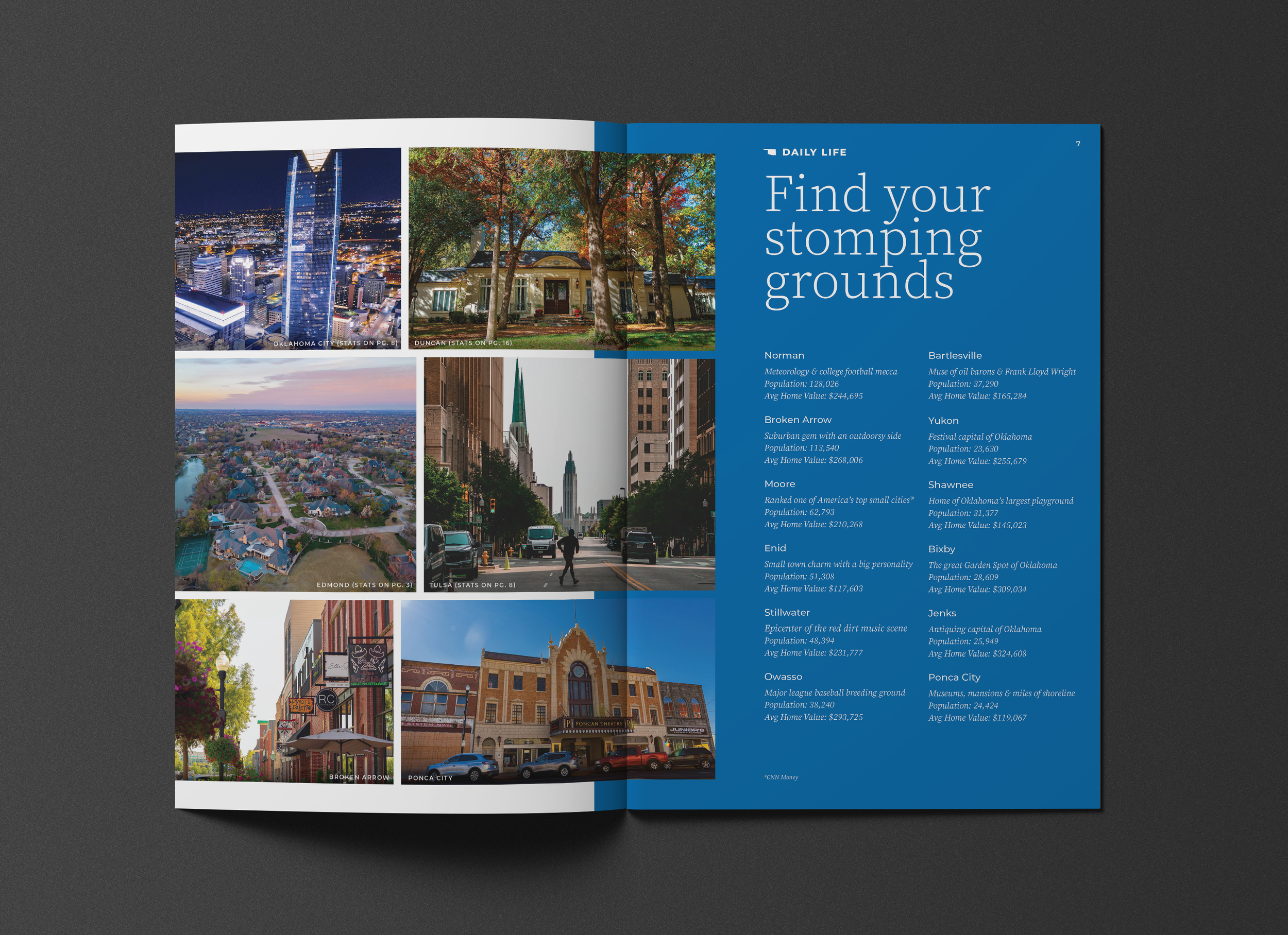 The Oklahoma Department of Commerce wanted ICG to create a quality of life brochure for potential residents considering moving to Oklahoma that illustrated what life in Oklahoma might look like. Copy was written by Macy Muirhead, and I laid out the design.